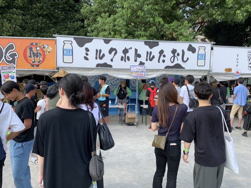 また、隣のブースでは”ミルクボトル倒し”ゲームも行い、大変盛り上がりました。